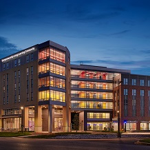 Amenities: One- and two-bedroom furnished suites with common living areas. Each floor has a laundry room and a kitchenette with a sink, microwave, two-burner cooktop and refrigerator. Other features include a game room, fitness room, conference room, multiple TV lounges and Wi-Fi, plus a grab-and-go eatery on site.