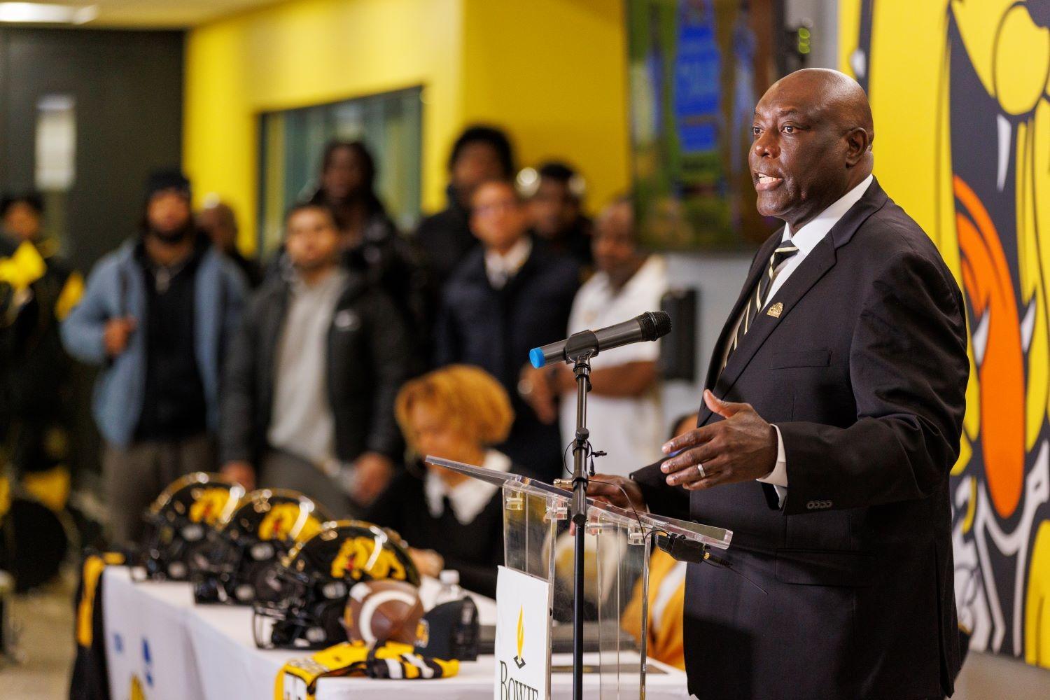 “To the Bowie State University community, I am honored and grateful to formally accept the position of head football coach,” Odums said. “I want to thank President Breaux for her confidence and leadership throughout this process. I also thank Dr. Jolisa Williams for the opportunity to lead this proud program. I am truly appreciative of the trust placed in me to guide Bowie State Football into its next chapter. I firmly believe that discipline, character, leadership and citizenship are the foundations of sustained success. Those principles shape young men and prepare them for life beyond football and ultimately create a winning culture. When those standards are upheld, championships follow.”