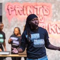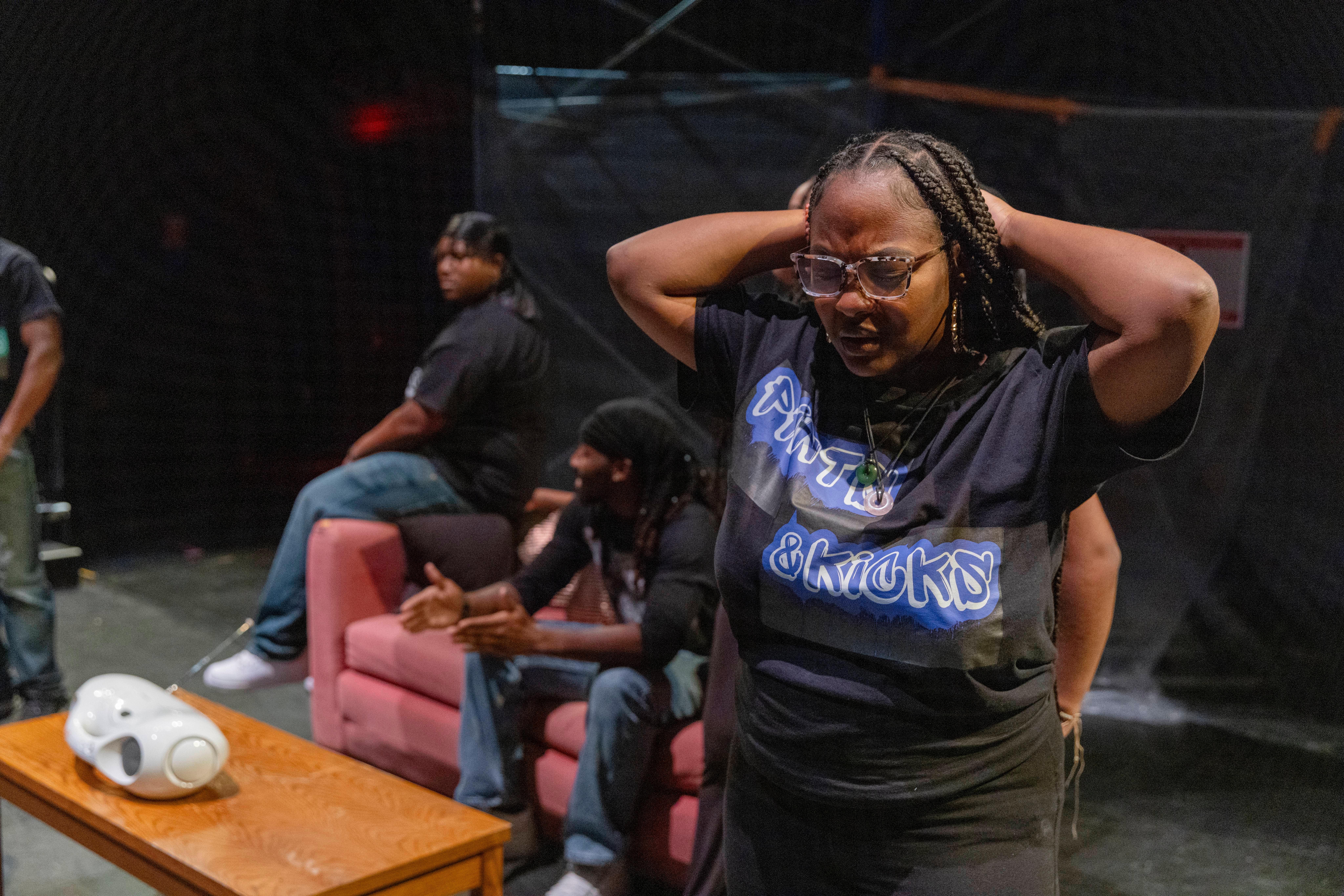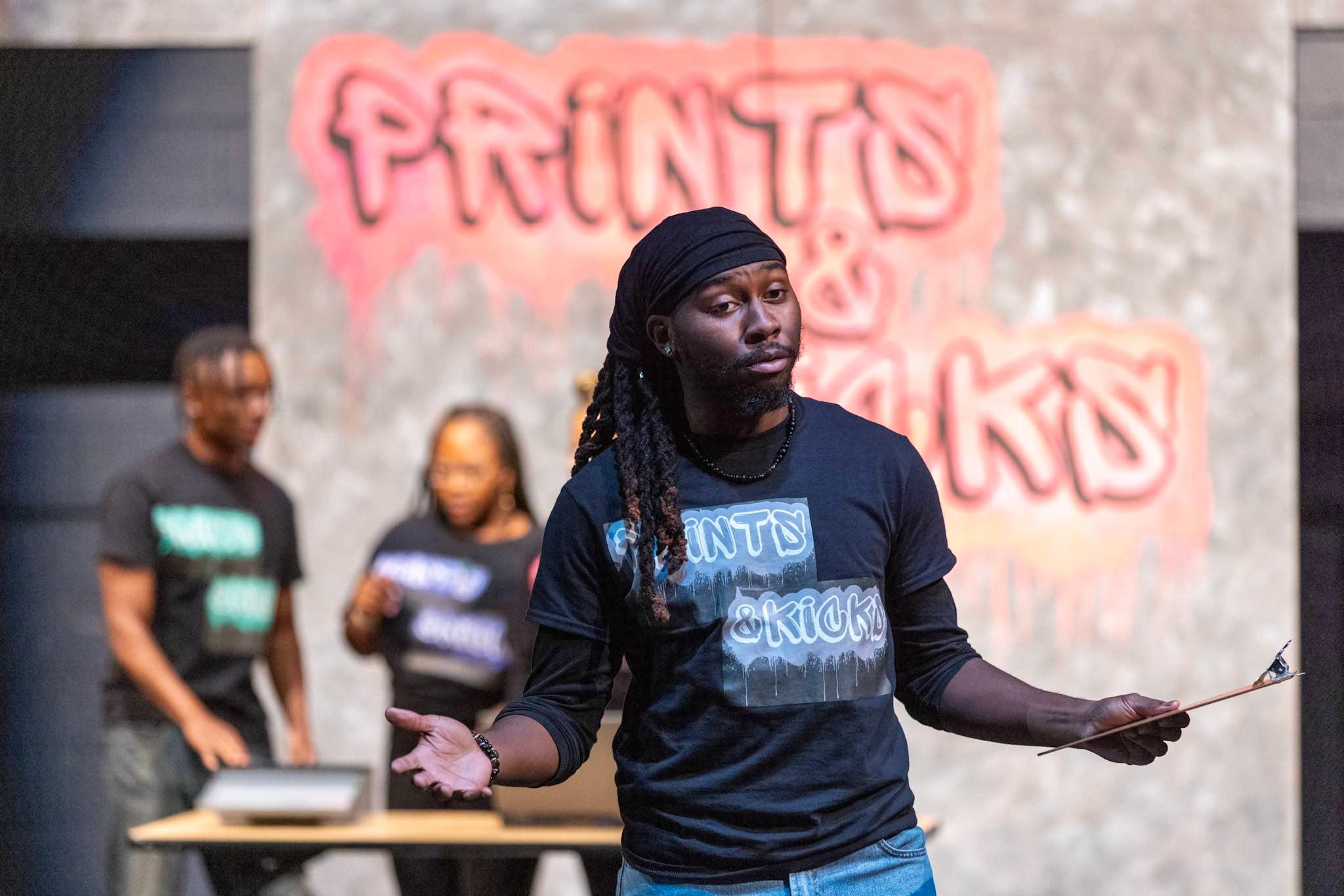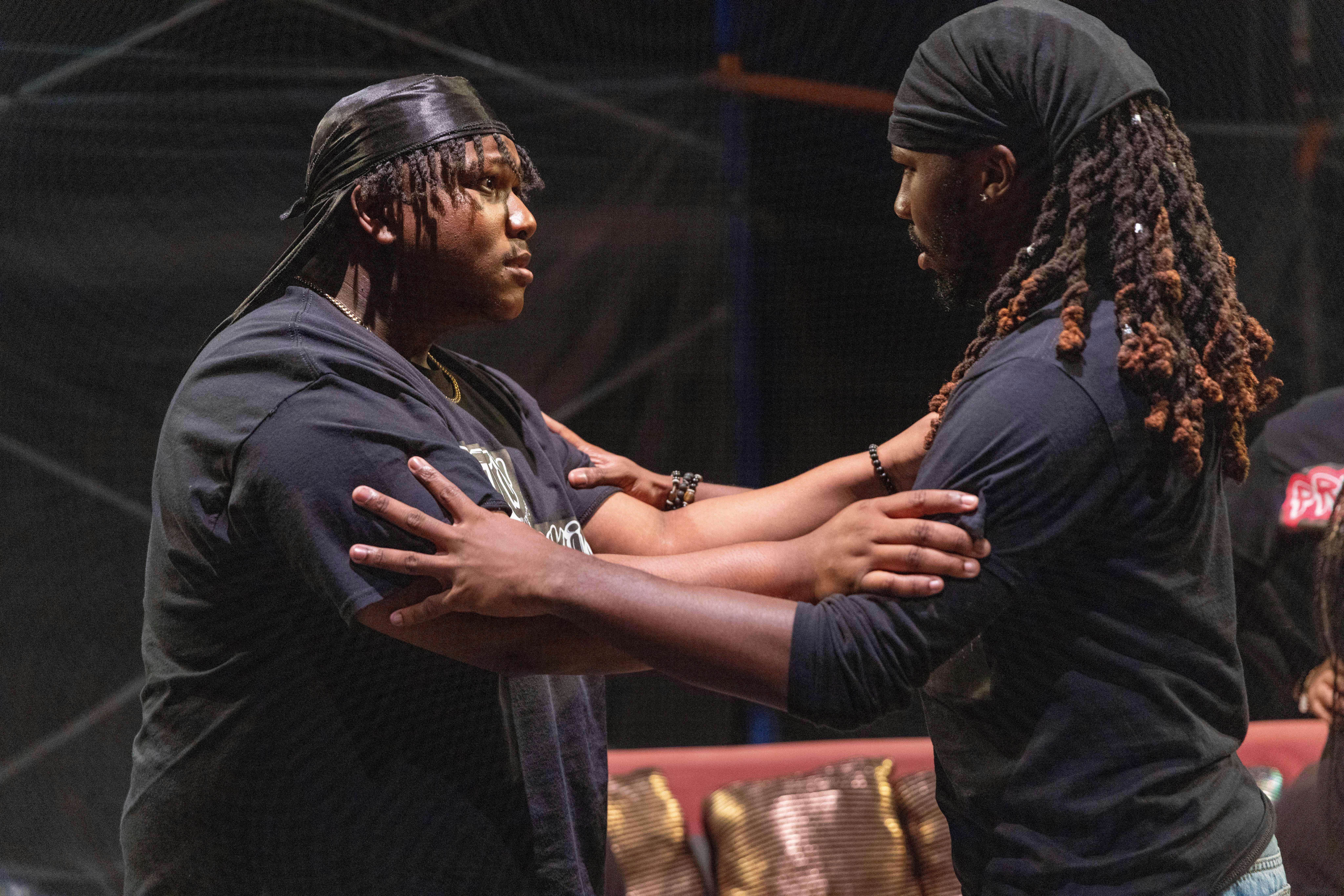 Production PhotosSubmenuProduction PhotosTransformation Fabulation Ride the Cyclone Buy Black Medea Flyin' West Dreamgirls Pipeline What To Send Up When It Goes Down Little Shop of Horrors #metoo Godspell Cinderella, The Remix A Song For Coretta Bengal Tiger at the Baghdad Zoo The Fourth of April Blood Knot The Dutchman Julius Caesar Oleanna The Trojan Women X: Or, Betty Shabazz vs. The Nation Excellence in Black Dance (The Collective) Spring Dance Concert Home›Academics›Colleges & Departments›College of Arts & Sciences›Departments›Department of Fine and Performing Arts›BSU Theatre›Production Photos›Buy Black Buy Black (dir. Brielle Bertrand and Malaysha Sabria, Class 2025) Photo credit Joseph Edwards