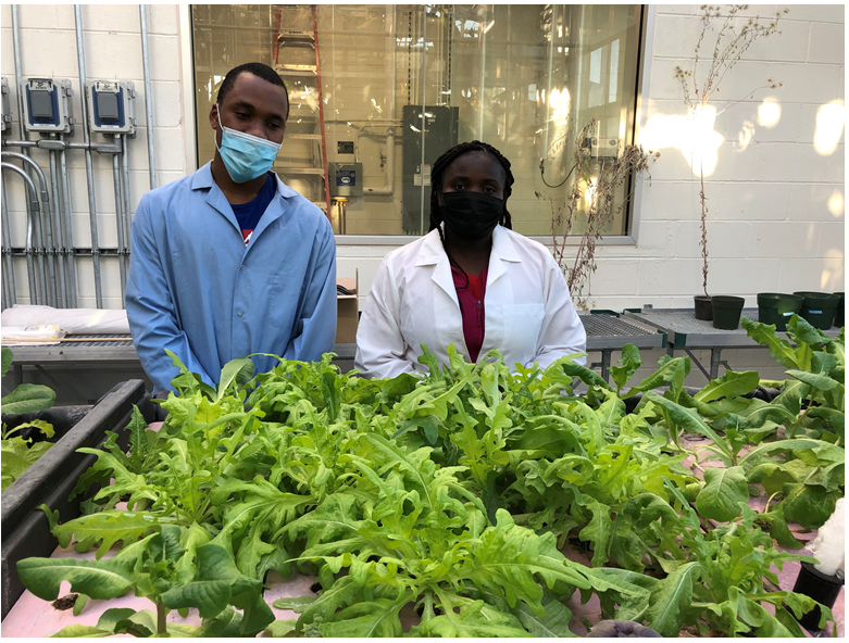Abdullahi- student researcher working on hyroponically cultivated spinach